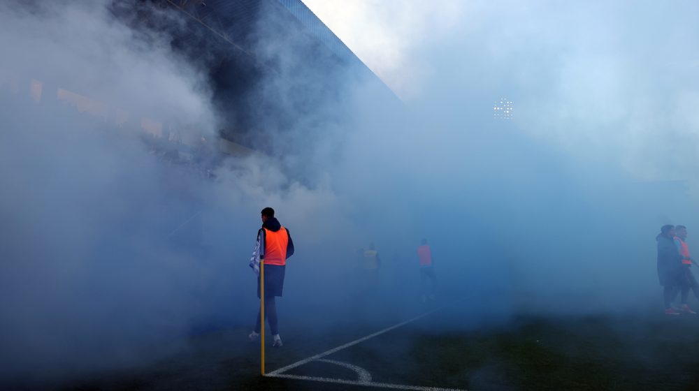 Naime, čim je utakmica počela, domaći navijači su zapalili baklje i dimne bombe, pa se prekid potrajao nekoliko minuta dok se dim nije razišao.