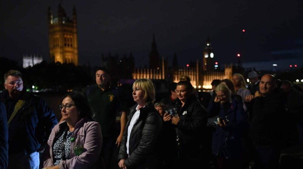 Foto: EPA-EFE/NEIL HALLCela Velika Britanija večeras je minutom ćutanja odala poštu kraljici Elizabeti Drugoj (Elizabeth) koja je preminula 8. septembra posle više od 70 godina vladavine.