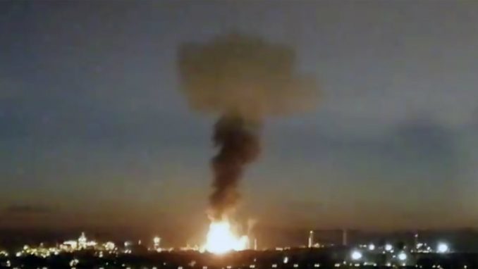 Lokalni stanovnici objavili su video snimke koji pokazuju stanje posle eksplozije, sa vatrom i visokim stubom crnog dima koji izlazi iz kruga fabrike sa velikim industrijskim rezervoarima.
