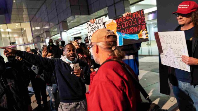 Foto: Beta/ AP/ David GoldmanDesetine gnevnih pristalica američkog predsednika Donalda Trampa okupile su se noćas kod centara za brojanje glasova u Detroitu i Finiksu, dok hiljade njegovih protivnika protestuju širom SAD, tražeći brojanje listića do kraja u saveznim državama u kojima pobednik nije poznat.