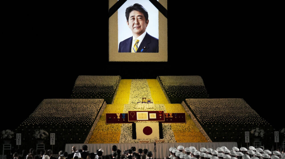 Već od jutra hiljade običnih Japanaca pristizalo je do arene u centru glavnog grada da polože cveće i kratko stanu pred Abeovim portretom postavljenim u šatoru podignutom za tu priliku.