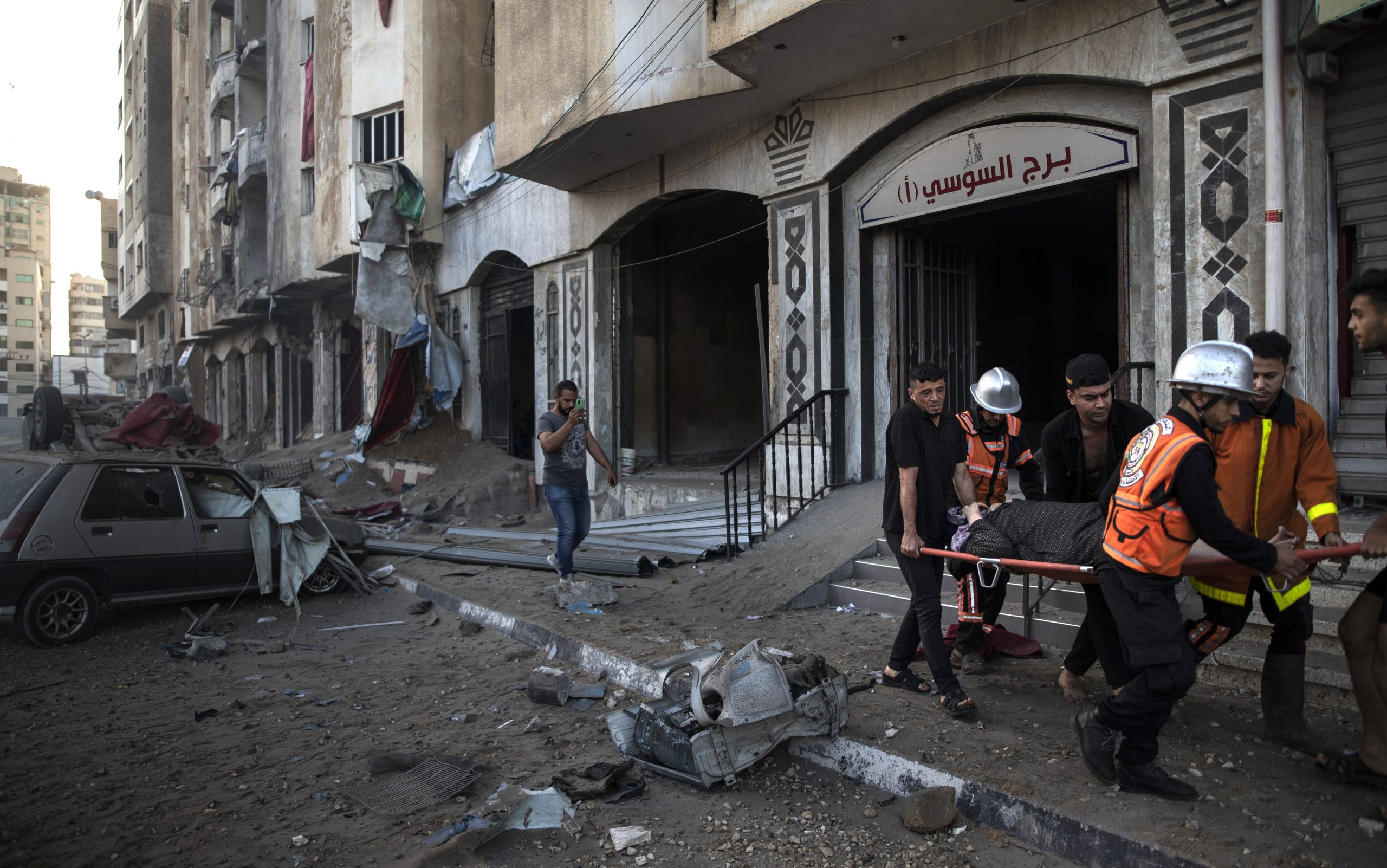 Foto: AP Photo/Ariel SchalitIzraelski borbeni avioni srušili su danas kulu „al Šuruk“ u gradu Gazi, pošto su više puta upozorili stanare da izađu.