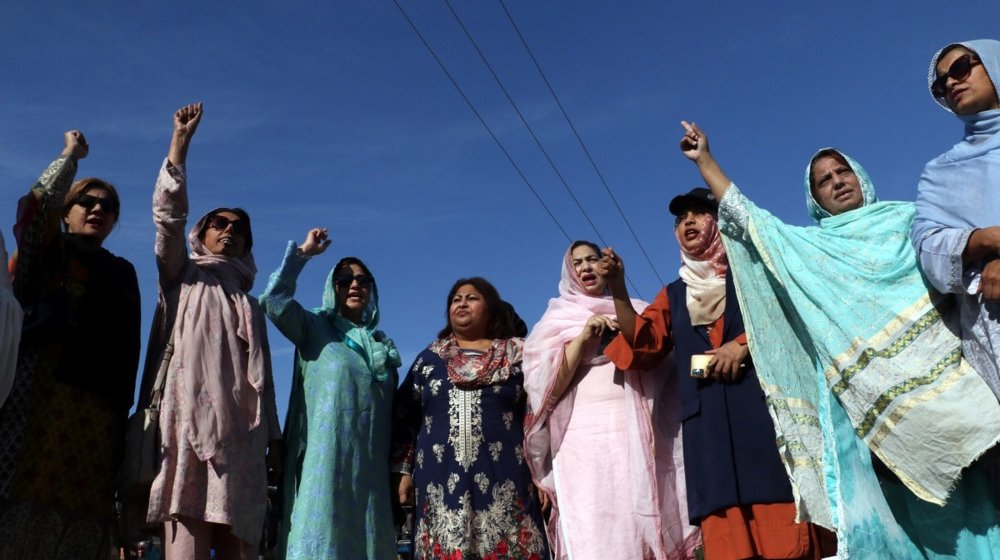 EPA-EFE/SOHAIL SHAHZADDok su se hiljade ljudi okupljale na ulicama Islamabada, glavnog grada Pakistana, tražeći oslobođenje bivšeg premijera Imrana Kana, na čelu protesta je bila jedna neuobičajena akterka.