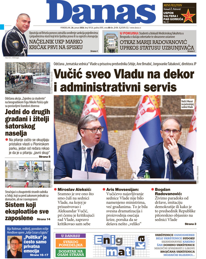 Pratite nas na našoj Facebook i Instagram stranici, ali i na X nalogu. Pretplatite se na PDF izdanje lista Danas.