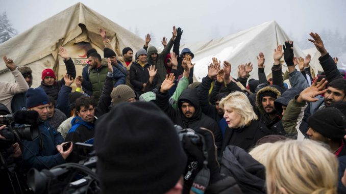 Foto: EPA-EFE/ JEAN-CHRISTOPHE BOTTOvo je sramota za Bosnu i Hercegovinu, sramim se kao Bosanka zbog situacije na „Vučjaku“, izjavila je visoka poverenica Saveta Evrope za ljudska prava Dunja Mijatović, koja je danšnju posetu BiH počela obilaskom ovog migrantskog kampa koji se nalazi nedaleko od Bihaća, na severozapadu Bosne i Hercegovine.
