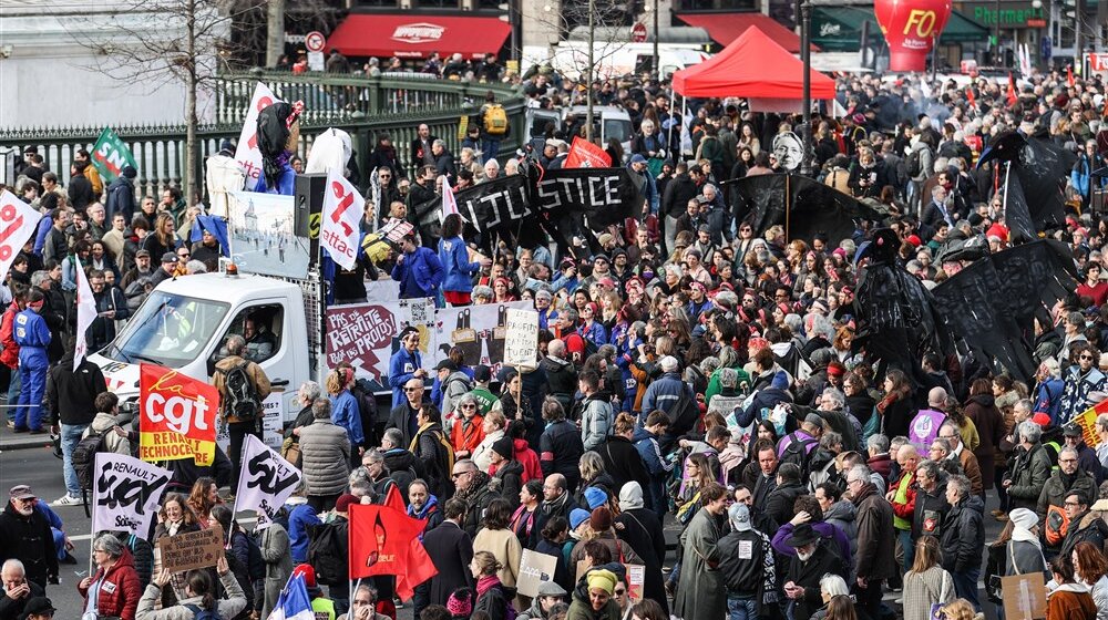 Sindikati su šesti put od početka godine proglasili Dan štrajkova i demonstracija širom zemlje, sa ciljem da ponove veliku izlaznost viđenu na prvom velikom protestu, 19. januara, kada je više od milion ljudi marširalo protiv promena penzione politike .
