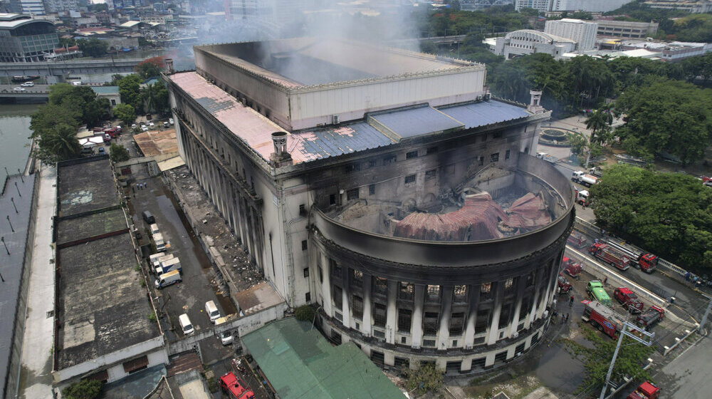 foto (AP Photo/Aaron Favila)Ogroman požar uništio je istorijsko zdanje centralne pošte u Manili, saopštile su danas filipinske vlasti.