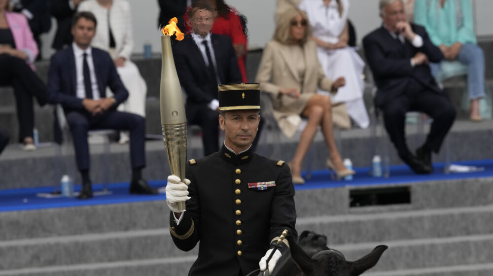 Samo 12 dana pre početka Olimpijskih igara u glavnom gradu Francuske Olimpijska baklja pridružena je hiljadama vojnika, spasilaca i lekara koji su marširali Parizom, a iznad njih su preletali borbeni avioni.