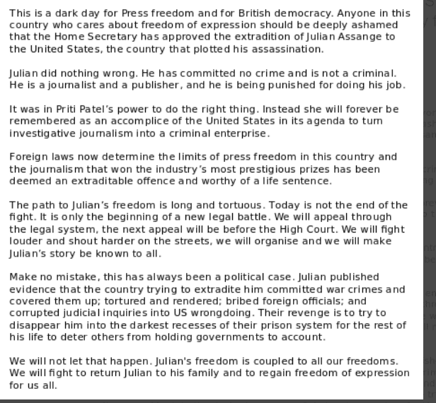 „Mračan dan za slobodu medija i britansku demokratiju. Na odluku će biti uložena žalba.“, naveli su iz Vikiliksa.