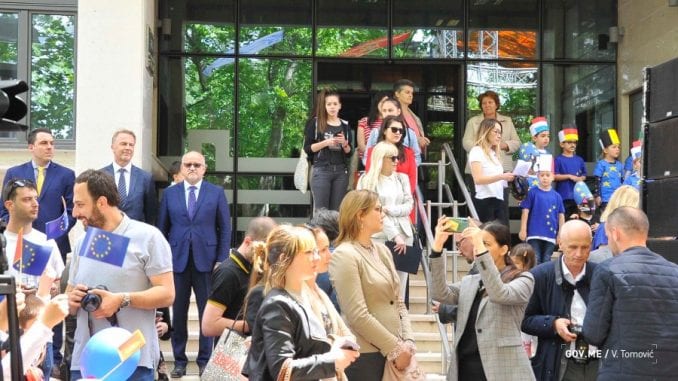 Foto: B.P.đCentralni događaj proslave Dana Evrope koja je održana u Podgorici ispred zgrade opštine bilo je Evropsko dvorište u okviru kojeg je održan zabavni program,Sajam ambasada članica Evropske unije kao i izložba projekta Evropske unije u Crnoj Gori.