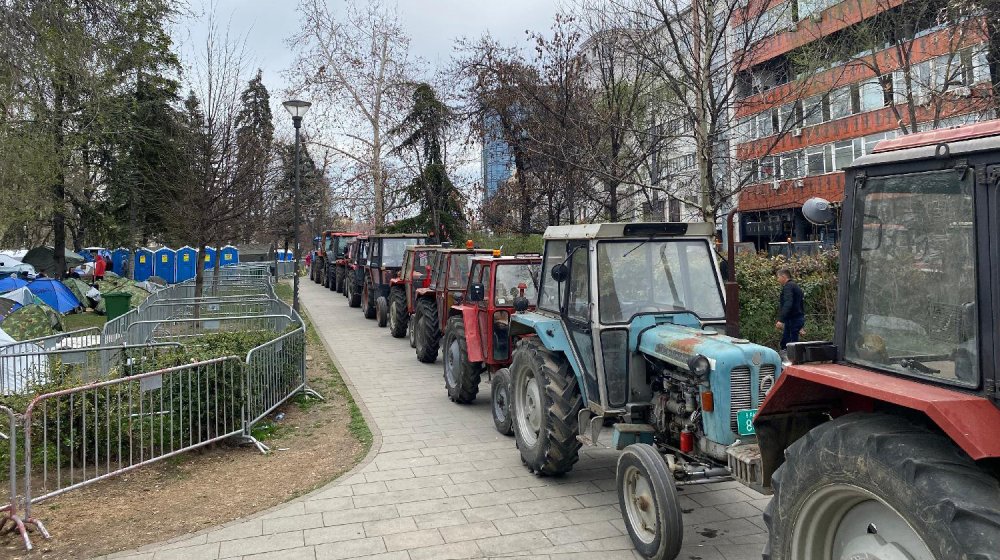 Foto: FoNet/Sofija VukajlovićStotine traktora sa probušenim gumama parkiranih u srcu Beograda oko Pionirskog parka, preko puta Narodne skupštine Srbije i reke ljudi koji posećuju ovaj park, dobacivajući pogrdne reči onima koji kampuju u parku, prizor je sa jedne od najprometnijih lokacija u srpskoj prestonici.
