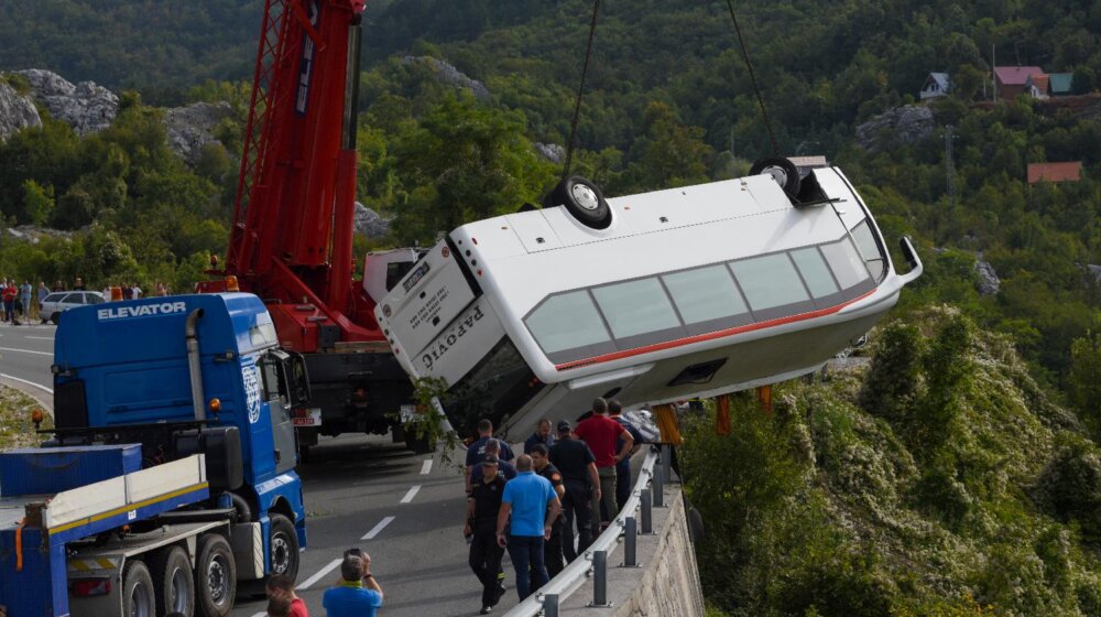 Foto: FoNet / APU udesu autobusa koji je danas s puta Cetinje-Budva sleteo niz strminu, poginuo je državljanin Velike Britanije i devetnaestogodišnja devojka iz Crne Gore, potvrđeno je iz Osnovnog tužilaštva na Cetinju.