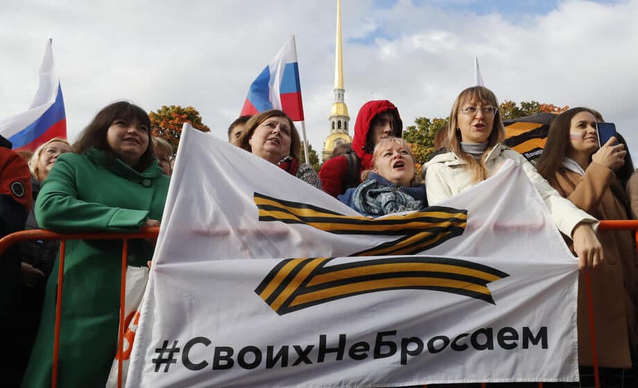 EPA-EFE/ANATOLY MALTSEVRusi su masovno izašli na ulice Moskve i Sankt Peterburga da bi se okupili u znak podrške pripajanju okupiranog ukrajinskog regiona Donbasa Rusiji. U utorak su četiri ukrajinska okupirana regiona – Donjeck, Lugansk, Herson i Zaporožje – najavile referendum o pridruživanju Rusiji od 23. do 27. septembra. Odluku su pozdravile ruske vlasti i osudile zapadni političari.