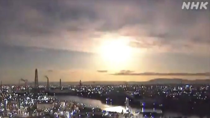 Javna televizija NHK javila je da su njihove kamere u centralnim prefekturama Aiči Mie i drugde snimile plamteću loptu u južnom nebu.