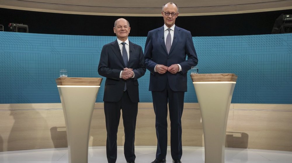 Foto: Michael Kappeler /dpa via APNemački kancelar Olaf Šolc (Scholz) kritikovao je večeras svog rivala, konzervativca Fridriha Merca (Friedrich Merz) tokom televizijske debate da je „prekršio reč“ predstavljajući parlamentu tekst za pooštravanje migrantske politike koju je podržala ekstremno desničarska stranka Alternativa za Nemačku (AfD).
