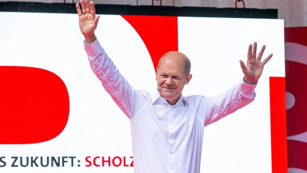 foto EPA-EFE/Theo Klein / POOLOlaf Šolc, kandidat Socijaldemokratske partije (SPD, levi centar) za naslednika Angele Merkel na poziciji nemačkog kancelara, naglasio je u nedelju u poslednjoj od ukupno tri TV debate pred federalne izbore koji će biti održani 26. septembra svoju želju da formira Vladu sa Zelenima…