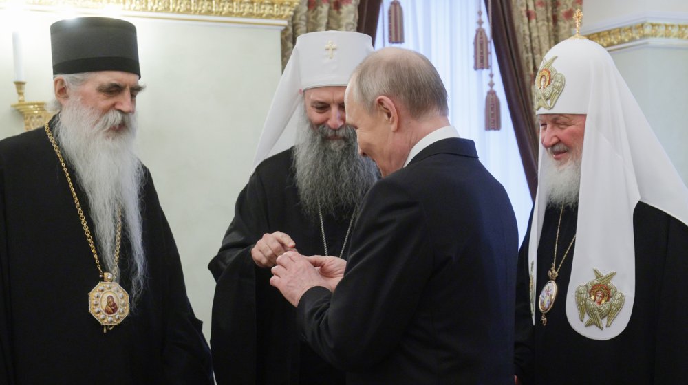 foto EPA-EFE/GAVRIIL GRIGOROV / SPUTNIK /KREMLIN POOL MANDATORY CREDITPoglavar Srpske pravoslavne crkve smatra da su protesti u Srbiji pod stranim uticajem, ali pojedini sveštenici izražavaju simpatije prema demonstrantima, piše švajcarski list „Noje cirher cajtung“.