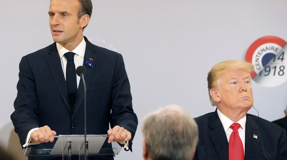 Foto: EPA-EFE/JACQUES DEMARTHON Predsednik SAD Donald Tramp i predsednik Francuske Emanuel Makron su se danas sastali u Beloj kući, u Vašingtonu u vreme duboke neizvesnosti o budućnosti transatlantskih odnosa, dok Tramp transformiše spoljnu poltiku SAD i u pokušaju brzog okončavanja rata u Ukrajini isključuje vrh Evrope.