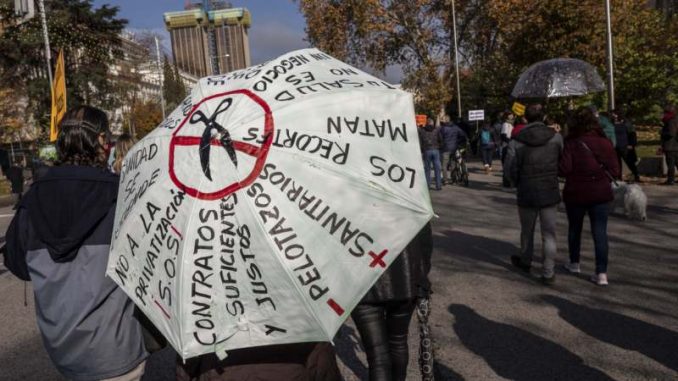 Organizatori su naveli da se oko 10.000 ljudi okupilo u znak podrške očuvanja sistema javnog zdravlja na širem području Madrida jer je na meti kritika zbog nedostatka investicija usred epidemije korona virusa.