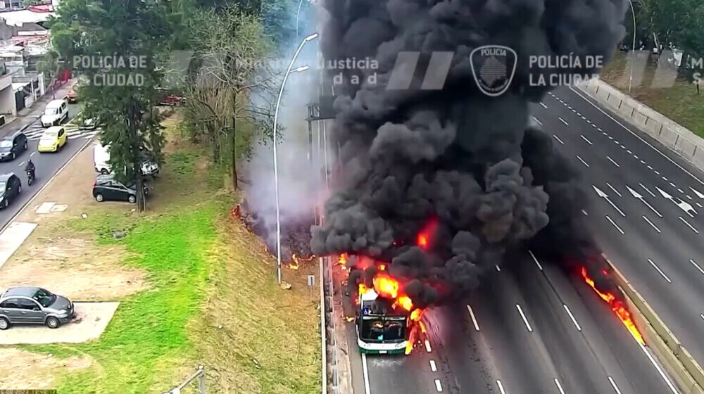 foto: Printscreen/Twitter/ReutersPolicijske sigurnosne kamere u Buenos Ajresu snimile su požar autobusa na autoputu General Paz.