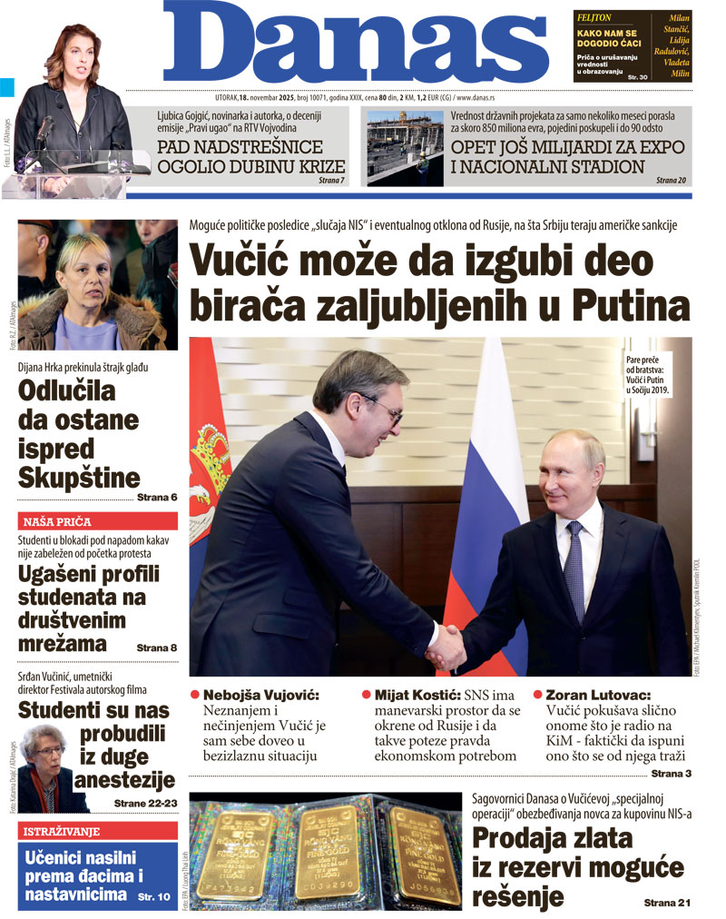 Pratite nas na našoj Facebook i Instagram stranici, ali i na X nalogu. Pretplatite se na PDF izdanje lista Danas.
