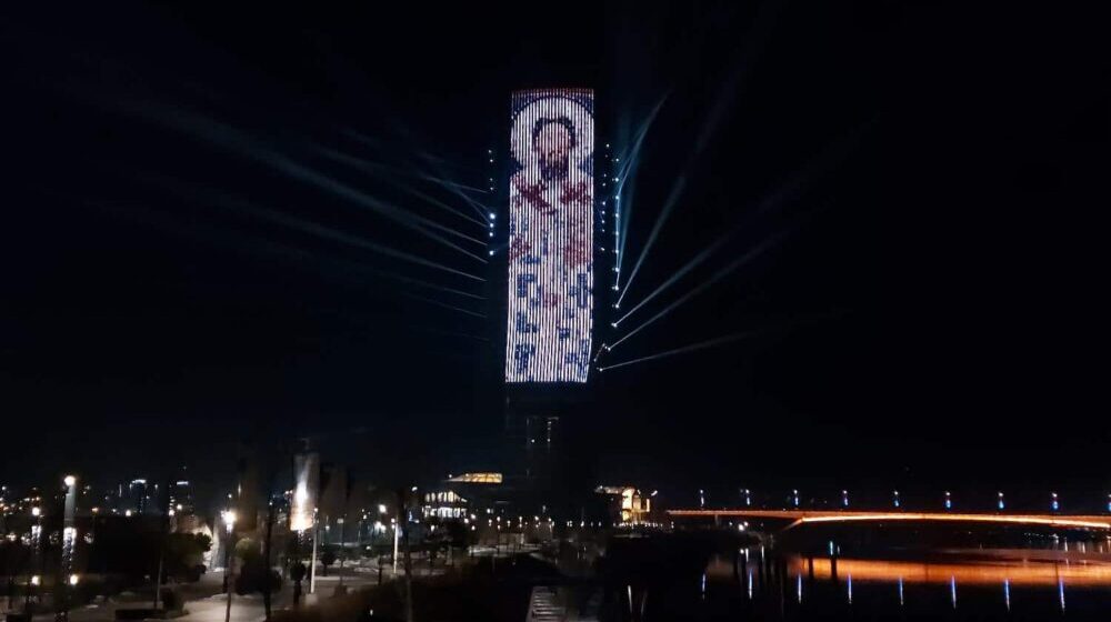 Foto: FoNetSa Kule Beograd obeležen je dan Svetog Save, prvog srpskog arhiepiskopa, a tokom večeri 27. januara na medija fasadi ispisani su stihovi „Da živimo svi u slozi, Sveti Savo ti pomozi, počuj glas svog roda, srpskoga naroda“ i lik prosvetitelja, navodi se u saopštenju kompanije „Beograd na vodi“.