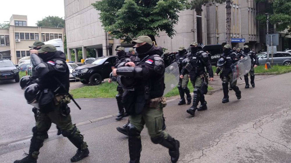 Na skupu je bio raspoređen veliki broj pripadnika policije i interventne, u punoj opremi za razbijanje demonstracija.