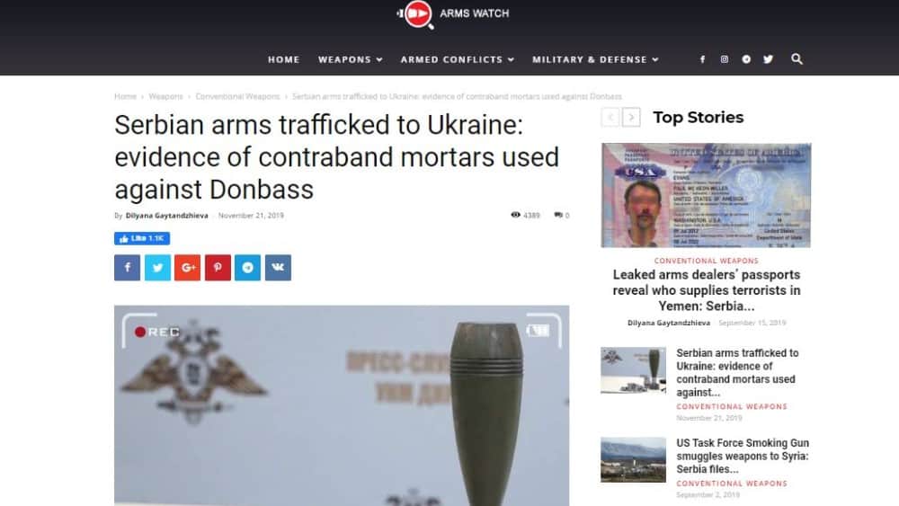 U tekstu se navodi da iako Srbija zvanično ne izvozi oružje u Ukrajinu od početka oružanog sukoba između Ukrajine i samoproglašene Donjecke Narodne Republike (DNR), čini se da je srpsko oružje proizvedeno 2016. ukrajinska vojska koristila u ratu u Donbasu.