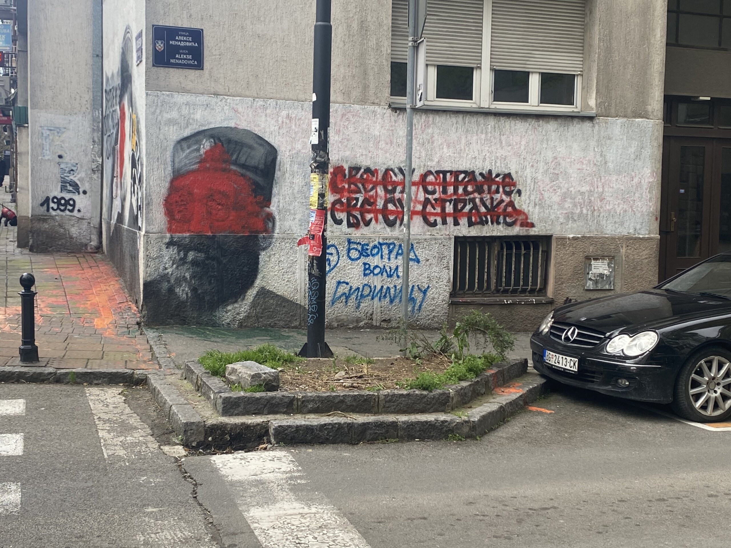 Crvena farba bačena je i na mural vojnom generalu Draži Mihailoviću, koji se nalazi odmah pored Mladićevog murala.