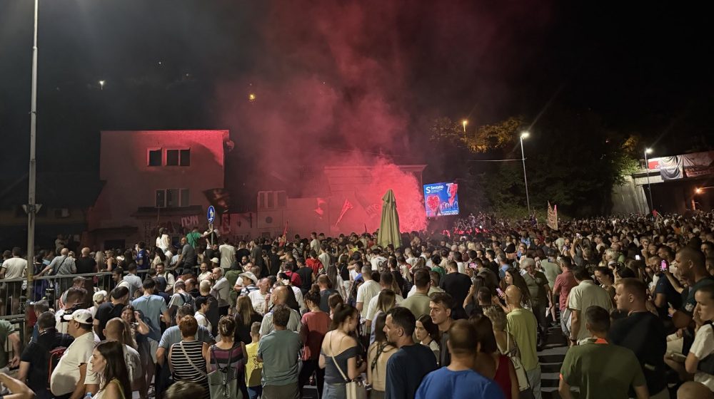 21.54 Blokadu magistrale u jednom trenutku osvetlila je i bakljada dela okupljenih građana.