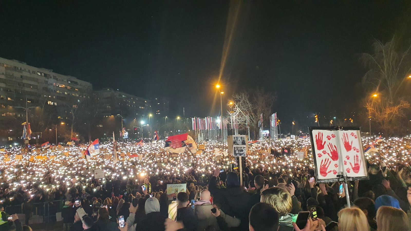 15. 15 Građani su na celoj dužini Mosta slobode  i i svim okolnim ulicama, zauzeli su Bulevar cara Lazara i Bulevar oslobođenja. Broj ljudi je ogroman, a protok Interneta je slab.
