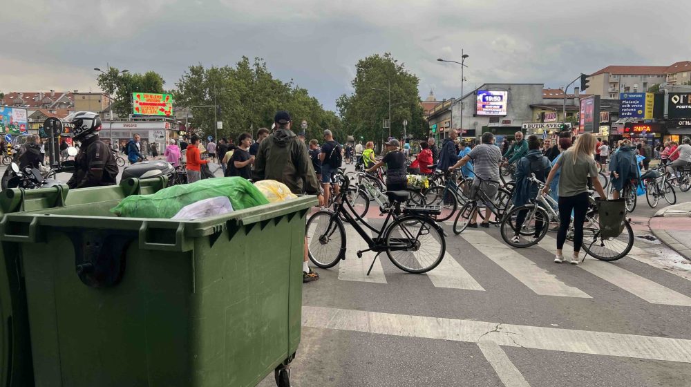 19.55 Od 19 časova su većinom biciklisti blokirali raskrsnicu na Bulevaru oslobođenja kod Futoške pijace u Novom Sadu.