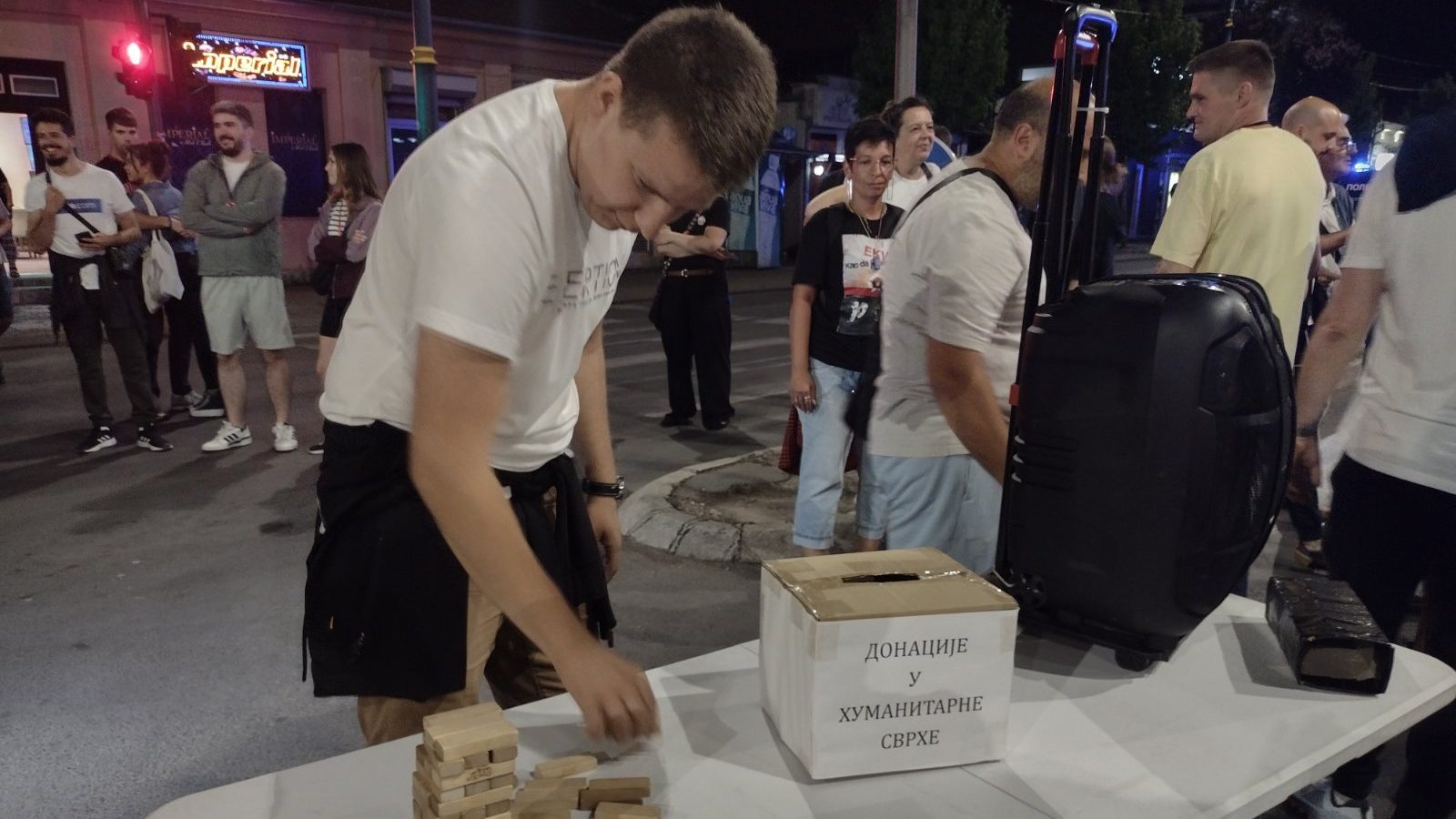 21.40 Na blokadi u Kragujevcu skupljaju se donacije u humanitarne svrhe za pomoċ ljudima koji su izgubili domove u požarima.