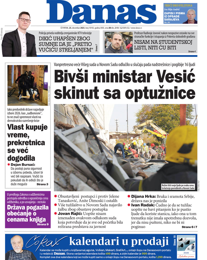 Pratite nas na našoj Facebook i Instagram stranici, ali i na X nalogu. Pretplatite se na PDF izdanje lista Danas.