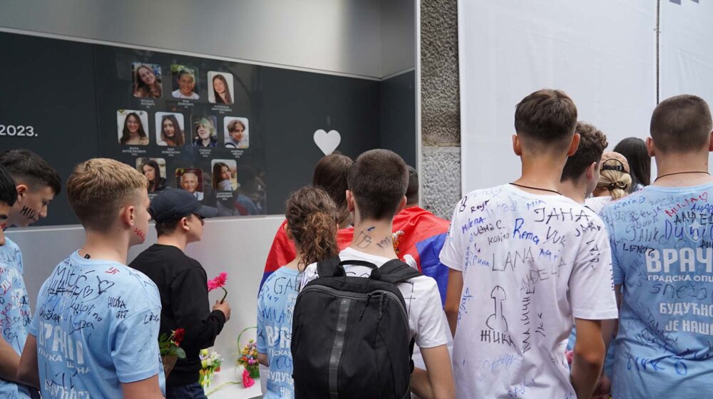 Od devetoro ubijenih učenika, sedmoro bi danas slavilo malu maturu sa svojim vršnjacima. Njihovi drugari i drugarice iz drugih škola su ispred „Ribnikara“ ostavili poruke, cveće i palili sveće, preneo je N1.