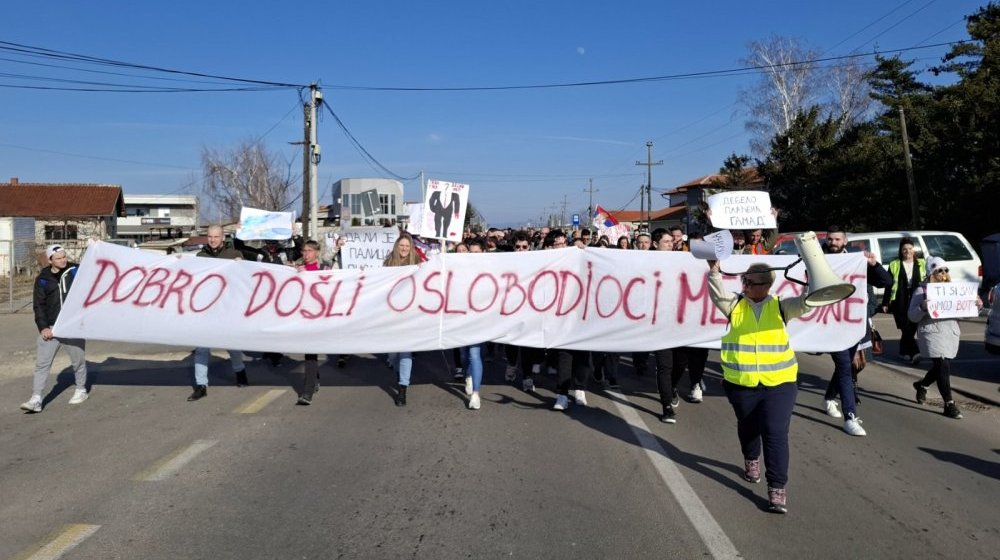 Protest u Merošini: Foto Lj. PavlovićDobro došli oslobodioci Merošine, pisalo je na velikom transprentu kojim se građani Merošine dočekali kolonu studenata, profesora i građana koji su pešačili od Niša, u znak podrške studentima koje su na predhodnom okupljanju u ovom mestu targetirale i vređale pristalice aktuelne vlasti.
