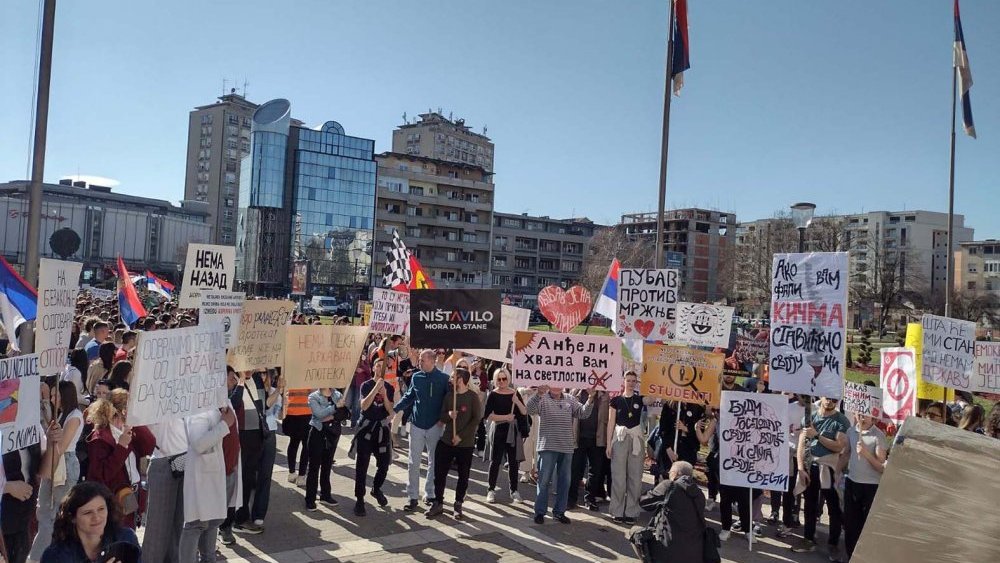 13.22 Profesor Petar Vujović iz Niša je na protestu ispred Školske uprave zamolio sve građane da budu bezrezervna podrška studentima koji, kako je kazao, marširaju stotinama kilometara, krvavih nogu, za naše lepše, bolje u pravednije društvo. „Nama ne treba jedan vođa, mi nismo stado ovaca, nama trebaju hiljade ljudi od integriteta, stručnih, poštenih u vrednih, koji će voditi državu“, rekao je on.