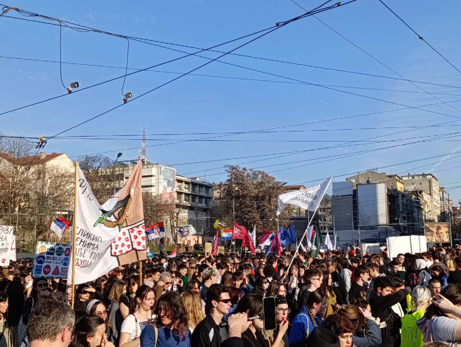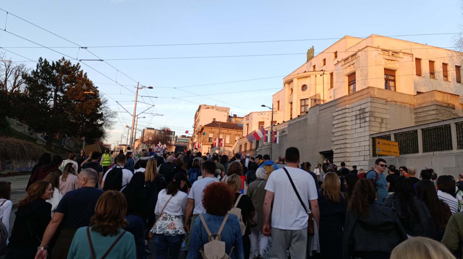 18.27. Učenici srednjih škola su nastavili pravo bulevarom Despota stefana, a ostali su se uputili na protest ispred RTS-a koji počinje u 18.30.