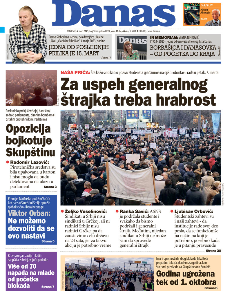 Pratite nas na našoj Facebook i Instagram stranici, ali i na X nalogu. Pretplatite se na PDF izdanje lista Danas.