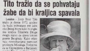 „Ovde je jako lepo ali iznenađena sam da ovde nema žaba. Odrasla sam slušajući horove žaba i taj zvuk me jako opušta“, rekla je britanska kraljica maršalu Josipu Brozu kako navodi profesor Miodrag Todorović.