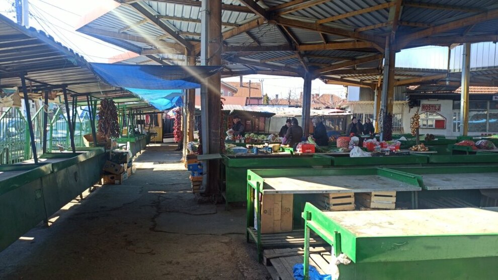 Pijaca u centru grada prazna, nije popunjena ni polovina tezgi. Tako je, kažu zakupci, radnim danima, dok je vikendom – posebno subotom koji je pijačni dan u Vranju – mnogo više ljudi, „igla nema gde da se baci“.