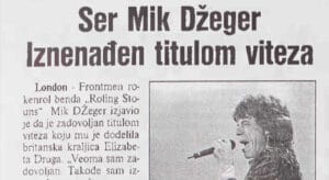 Foto: Radenko TopalovićPevač Rolingstonsa Mik Džeger pre 20 godina dobio je prestižno priznanje britanske kraljice Elizabete Druge. „Još dečko rokenrola”, koji je izluđivao britanski estabišment svojim načinom života, dobio je plemićku titulu u subotu 15. juna zbog svojih zasluga u svetu muzike. Frontmen grupe Rolingstonsa sada će se zvanično zvati Ser Majl Filip Džeger“, objavio je Danas.