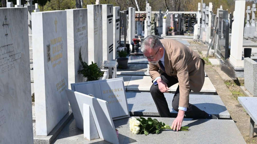 Beograd, 8.04.2025. - Ministar informisanja i telekomunikacija Dejan Ristic odao je danas na Novom groblju u Beogradu pocast novinarki Radislavi Dadi Vujasinovic, koja je stradala pod do sada nerazjasnjenim okolnostima na ovaj dan 1994. godine. (BETAPHOTO/Ministarstvo informisanja i telekomunikacija/Goran Zlatkovic)Ministar informisanja i telekomunikacija Dejan Ristić položio je danas cveće na grob novinarke Radislave Dade Vujasinović na beogradskom Novom groblju, povodom 31. godišnjice njene smrti.
