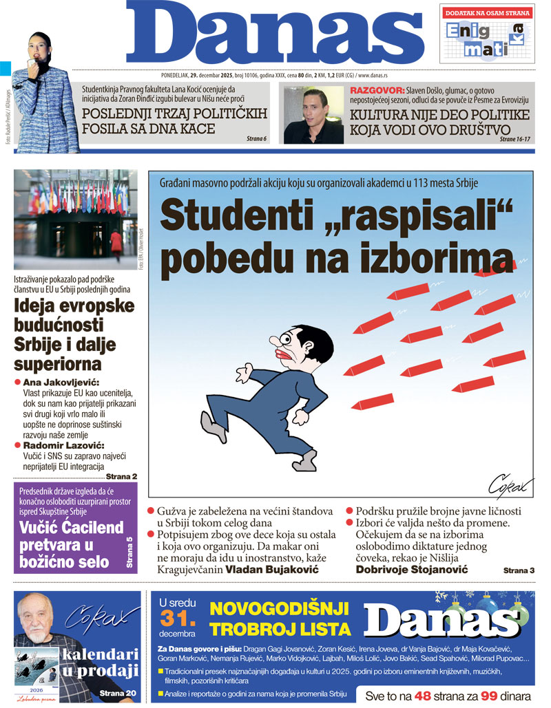 Pratite nas na našoj Facebook i Instagram stranici, ali i na X nalogu. Pretplatite se na PDF izdanje lista Danas.