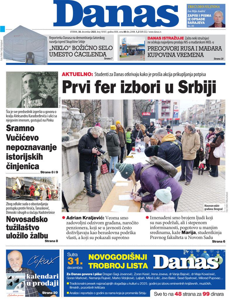 Pratite nas na našoj Facebook i Instagram stranici, ali i na X nalogu. Pretplatite se na PDF izdanje lista Danas.
