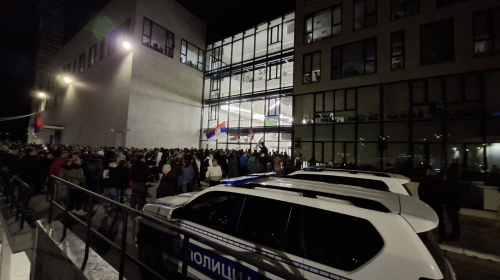 Ispred zgrade RTV su studenti, predstavnici opozicije, kao i novinari.