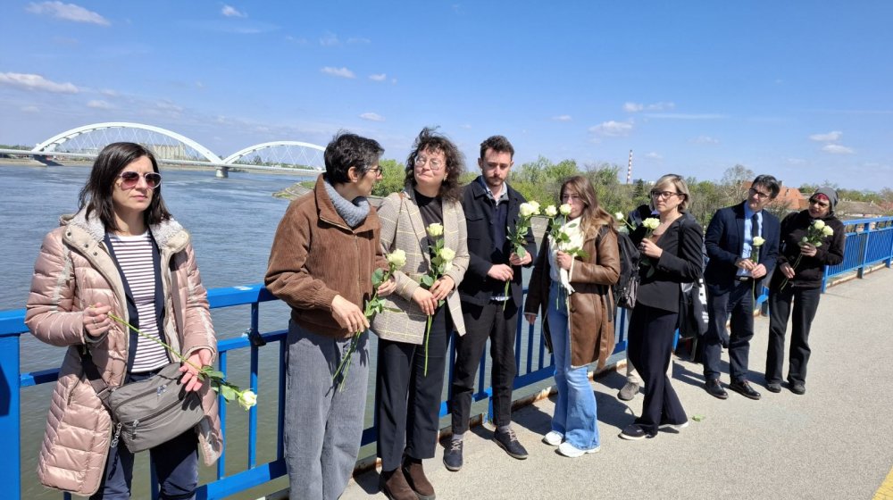 Oni su ovaj tragični događaj obeležili bacanjem cveća u Dunav u znak sećanja na Dadu Vujasinović.
