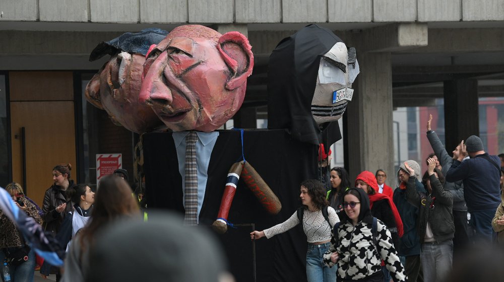 Tužilaštvo je u optužnom aktu predložilo sudu da troje optuženih proglasi krivim za krivično delo „nasilničko ponašanje na sportskoj priredbi ili javnom skupu“, koje su izvršili 22. novembra 2024. godine tokom blokade kolovoza u Bulevaru umetnosti, ispred FDU.