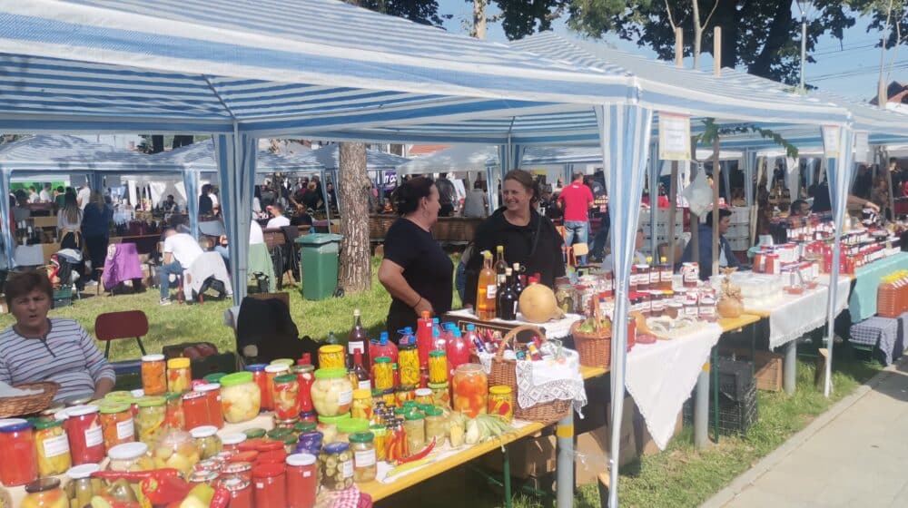 Na štandovima smeštenim u parku, nudili su se, lepo upakovani, domaći ajvari, kiseli krastavčići, paprika, mleveni paradajz, ali i med, različiti sokovi, sirupi, rakije, kolači i mesne prerađevine, kao i predmeti za domaćinstvo.