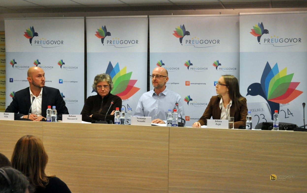 Foto: Medija centarNastavlja se trend zarobljavanja države pod izgovorom procesa pridruživanja Evropskoj uniji (EU), a sa ključnim reformama se stagnira ili čak nazaduje, glavni je nalaz izveštaja koalicije nevladinih organizacija PrEUgovor o uspunjenosti kriterijuma iz poglavlja 23 i 24 za period od aprila do septembra ove godine.